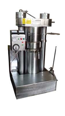 8、機器正常工作后,主機開始榨油,壓力表指針指到60mpa時,泵停止工作,壓力表下降,當指針指到54mpa時泵自動開始工作,當達到60mpa時,泵又自動停止,反復幾次后,起動、停止時間間隔越來越長,料筒下部油每3-4秒滴一滴時,全部榨油結束。